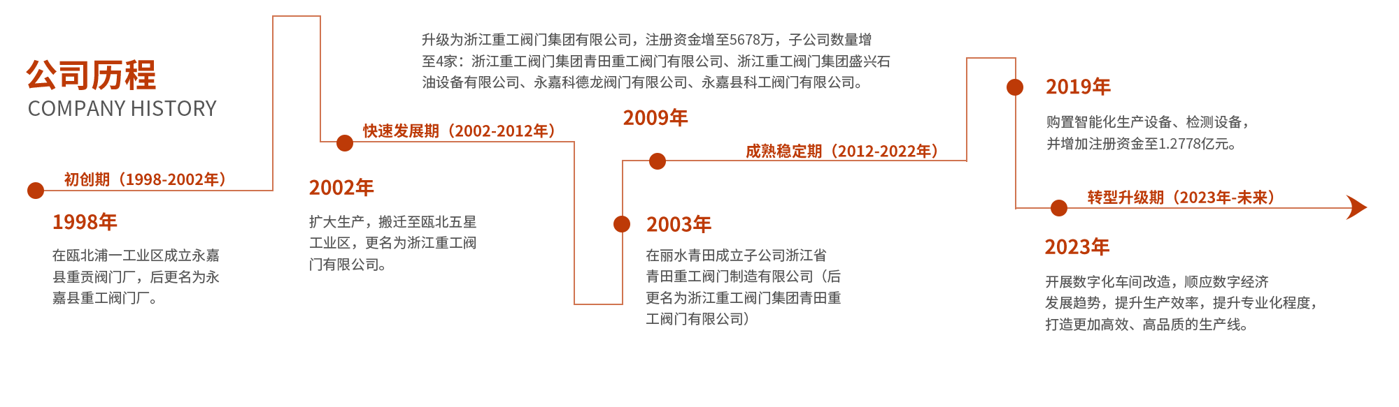 浙江重工閥門(mén)集團(tuán)始創(chuàng)于1999年,總部座落在溫州永嘉甌北五星工業(yè)區(qū),總占地面積23800多平方,注冊(cè)資金1.2778億元,集團(tuán)旗下?lián)碛?家子公司,其中全資子公司3家,控股公司2家。公司采用先進(jìn)的管理模式,實(shí)行產(chǎn)品專(zhuān)業(yè)化分類(lèi)生產(chǎn)和銷(xiāo)售,提高產(chǎn)品質(zhì)量。主要生產(chǎn)基地分布在:浙江溫州、麗水和青田等地,是一家集產(chǎn)品研發(fā)、設(shè)計(jì)、制造與銷(xiāo)售為一體的專(zhuān)業(yè)閥門(mén)企業(yè),在溫州甌北總部設(shè)立:辦公中心、科研中心、銷(xiāo)售中心、質(zhì)控中心和全過(guò)程網(wǎng)絡(luò)管理中心……