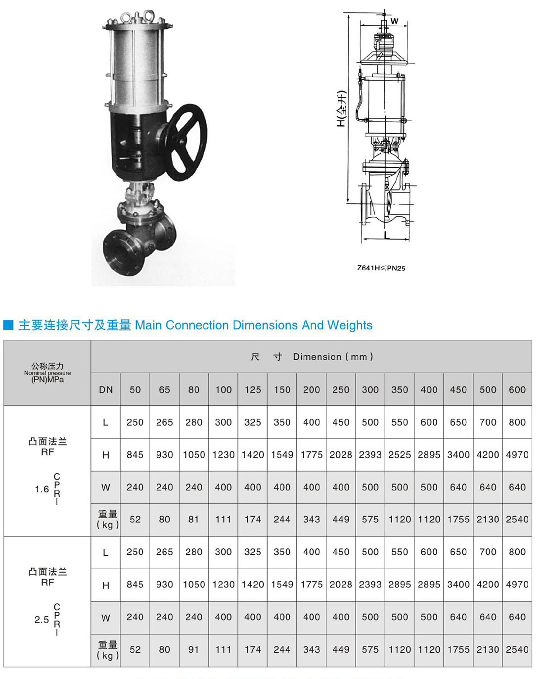 Z6S40、Z6S41(W、H、Y)-PN16、25 氣動帶手動閘閥