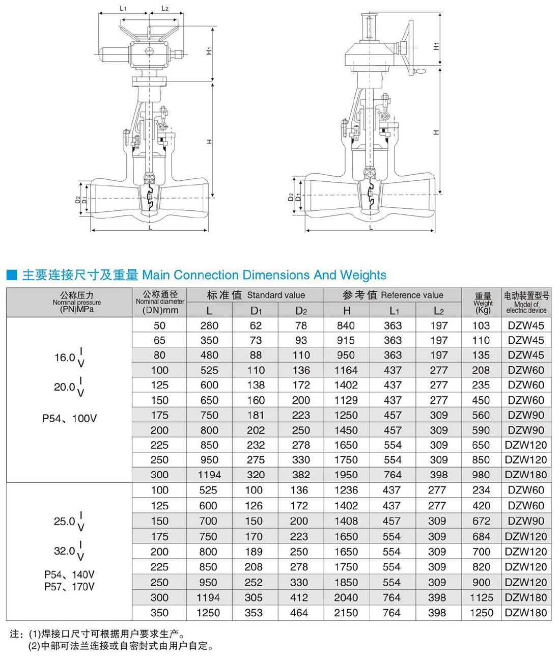 Z60、Z61、Z62、Z960、Z961、Z962、Z560、Z561、Z562、Z460、Z461、Z462 (H、Y) - PN 160、200、250、