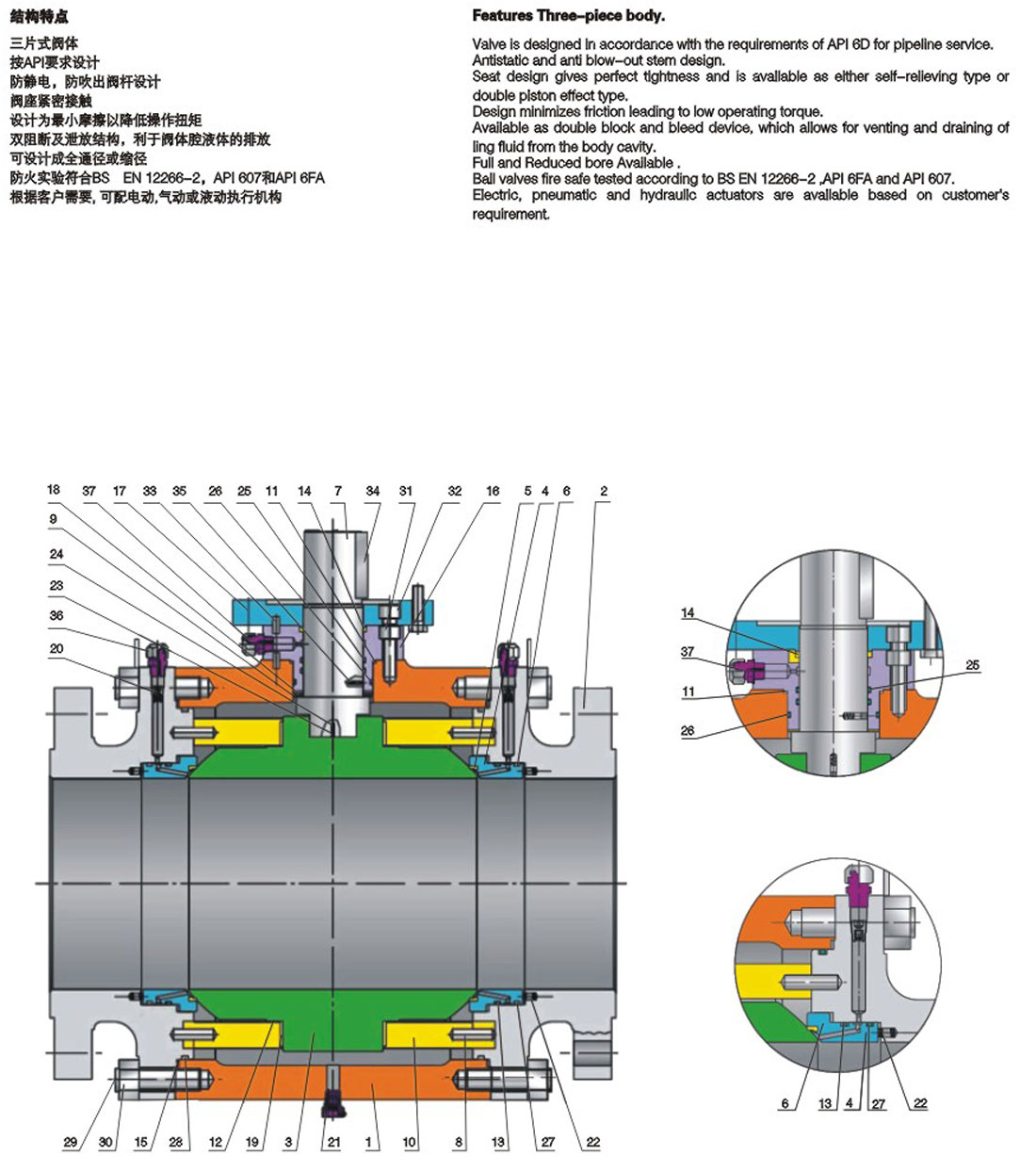 三片式固定鍛鋼球閥 Class150