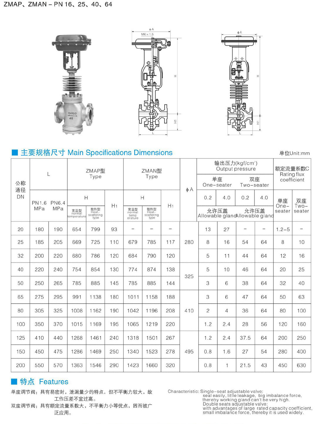 ZMAP, ZMAN-PN16, 25, 40, 64 pneumatic diaphragm control valves