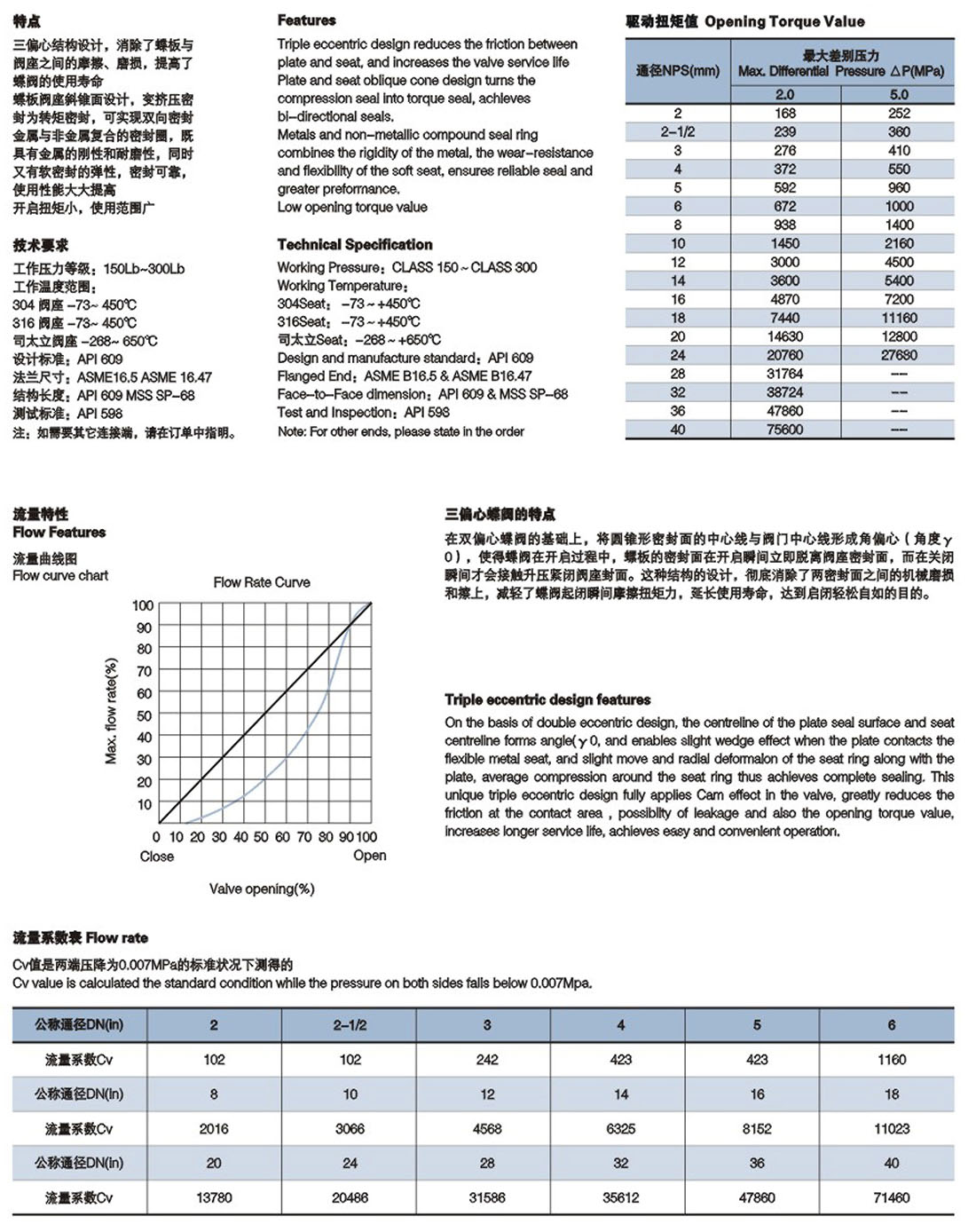 The three eccentric metal hard seal clamp or flange connection butterfly valve Class300 is widely used as an ideal device for cutting or regulating flow on medium pipelines in industries such as urban construction, petrochemicals, and power.